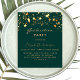 Une invitation glamour pour une fête de fin d'études en 2023 (ou toute année) pour lui et elle. Un arrière - plan vert décoré d'étoiles faux or. Personnalisez et ajoutez un nom et des détails du parti. Le texte Graduation et le nom sont écrits avec un script de style à la main moderne. Texte de couleur dorée. Retour : arrière - plan vert et étoiles dorées.