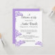Cette belle carte de faire-part Celebration of Life présente des bleuets délicats dans des teintes apaisantes de lilas et de violet. Conçu pour honorer et célébrer la vie de votre être cher avec élégance et grâce.