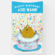 Bannière d'anniversaire joyeuse du Jour de la Marmotte avec marmotte de fond sautant d'un gâteau. Pour personnaliser le texte de modification pour ajouter son nom.