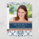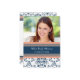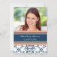 Invitation à la fête de graduation carte photo personnalisé dans le bleu marine foncé élégant et sophistiqué, corail orange, gris et blanc moderne motif de damas floral moderne moderne. Customisez ce grand carte photo en ajoutant l'année de votre diplôme, votre propre photo et les détails de votre fête de graduation.