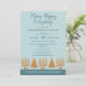 Concevez ces invitations de fête de vacances Merry Happy Chrismukkah avec les détails de votre événement sur ce design interconfessionnel simple et moderne de faux Menorahs de Hanoukka en or et arbres de Noël avec des polices mixtes en bleu foncé sur un fond bleu pastel doux. Chaque élément de texte sur ces invitations personnalisées or et bleu peut être modifié et personnalisé afin que vous puissiez changer "FÊTE DE CHRISMUKKAH" en "DÎNER DE FÊTES" ou tout autre texte correspondant à votre célébration. Une rangée de trois Menorahs en or faux et d'arbres de style moderne en bas met en valeur une bordure bleu foncé avec le texte blanc "Alors que nous célébrons Hanoucca et Noël ensemble" que vous pouvez personnaliser avec votre propre texte de fête ou supprimer entièrement si vous le préférez.