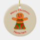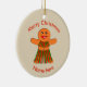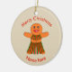 Ce ornement présente une jolie caricature d'une femme en pain d'épice colorée. Elle a les yeux noirs avec des élèves blancs et de jolis cils noirs et un grand sourire sur son visage. Elle a également des tasselles rouges et vertes sur sa jupe et le dessus prêt pour une fête de Noël.