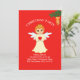 Petit ange de Noël sur invitation rouge. Le texte est prêt à être personnalisé.
