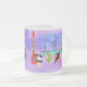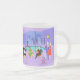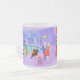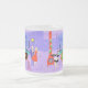 Cette Mug en verre dépoli rétro Tropical est assez festive pour égayer les perspectives de vacances de n'importe qui ! Le dessin animé présente le type de fête de Noël extrêmement sophistiqué qui n'est normalement visible que dans les films de Noël des années 1960. Un salon moderne du milieu du siècle est rempli de fêtards qui apprécient la décoration chic et violette. Une jolie femme en uniforme de domestique française porte un plateau de martinis. Elle se tient à côté d'une cheminée rouge à cônes avec un feu rugissant. Trois bas verts sont accrochés avec soin par la cheminée mod. Au centre de la pièce, un beau couple s'installe dans des chaises à oeufs d'orange. La femme porte une robe festive et verte. L'homme porte un costume noir avec une cravate rouge. Ils tiennent chacun un martini. Un autre couple devient cosy sous un lustre suspendu, jaune, Spoutnik. Le distingué homme aux cheveux gris porte un costume bleu, une chemise bleu clair et une cravate rouge. Il porte aussi un chapeau de Père Noël et tient un martini dans chaque main, montrant au monde que ses jours de fête sont loin d'être terminés. Son compagnon est une blonde en forme dans une robe rouge étonnante. M. Distinguished ferait mieux de faire attention parce qu'elle tient une pointe de faux-pied dans sa main. A l'avant de la pièce, un sapin de Noël kitsch et rose, orné de turquoises ornements et d'une étoile jaune. Derrière cette scène, on peut voir à travers des murs en verre du sol au plafond. La scène extérieure dispose d'une piscine ronde et turquoise. On peut voir la silhouette violette d'une femme plongeant ses jambes dans l'eau. Entre les murs violets et en pierre, il y a des silhouettes de palmiers ornés de décorations et de lampes de Noël. Les silhouettes de danses et de fêtards parlants sont également visibles. S'il y a une chose que cela prouve, c'est que, tandis que les gens qui vivent dans des maisons en verre ne devraient pas jeter de pierres, ils devraient certainement jeter des fêtes !