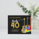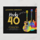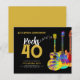 Cartes d'invitation personnalisées pour une fête d'anniversaire de 40 ans sur le thème de la guitare rock et roll avec une typographie moderne dorée et des notes de musique avec trois modèles de guitares funky psychédéliques cool en aquarelle sur fond noir. Ce modèle personnalisé facile à utiliser crée l'invitation parfaite pour célébrer quarante ans dans le style rock n roll et est idéal pour un guitariste, un musicien et les amateurs de musique. Ce design cool d'instrument de musique moderne célèbre l'énergie musicale de cet instrument merveilleux et est le moyen idéal pour faire rocker une célébration d'anniversaire de quarante ans. Œuvre originale de l'artiste Catherine Sweetman