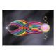 Un abstrait coulant de couleur brillante encadré d'or et bourré de diamants et de perles. Des flots brillants sinueux de courbe rouge, jaune, vert, bleu, violet et rose, sillonnant d'une grande perle jusqu'à la pointe, accentués à la fin par un éclat d'étoile. Cette conception arc-en-ciel est posée contre un arrière - plan de soie noire.