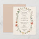 Une élégante invitation à la douche nuptiale budget dans le thème fleuri d'été boho vintage qui présente fleurs sauvages aquarelle et verdure avec un élément en arc qui met en évidence les détails de la douche nuptiale.