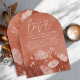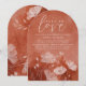Célébrez la future mariée avec cette élégante invitation à la douche nuptiale voûtée, ornée d'aquarelle en terre cuite et de fleurs blanches dessinées à la main. Le thème "Fall in Love" est parfait pour un événement d'automne, mêlant chaleur et romantisme. Personnalisez avec les détails de l'événement pour créer un invitation mémorable que vos invités adoreront.