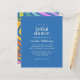 Cette vibrante invitation à la douche nuptiale présente un front bleu cobalt audacieux avec une typographie moderne propre et des détails élégants de script. Le dos présente un motif rétro amusant à rayures rétro dans les tons vifs de l'arc-en-ciel, ajoutant une touche amusante et super. Parfait pour célébrer une mariée élégante avec une douche colorée et optimiste. Imprimé sur papier économique, il est idéal pour des réunions modernes, jardins ou décontractées avec personnalité.