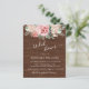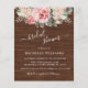 Budget Rustic Blush Pink Flowers avec Bois Arrière - plan Invitations de douche nuptiale Mariage - dispose blanc manuscrit et élégant script avec roses et fleurs rustiques rose rousse et verdure luxuriante. Veuillez noter que les enveloppes ne sont PAS incluses dans cette conception. Si vous avez besoin d'enveloppes, veuillez consulter notre collection ou les acheter séparément du marché.