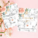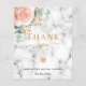 Une carte de remerciements nuptiale moderne et élégante. Impression en pierre de marbre comme arrière - plan. Décoré d'or rose et de roses roses rousses, fleurs de fleurs et feuilles d'eucalyptus vert couleur eau, sprigs, végétation et sprigs faux or. Lettres noires et dorées. Sur le devant le texte : Merci, nom, et une date. Retour : Personnalisez et ajoutez Votre note de remerciement et votre nom.