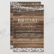 Budget Rustic Farmhouse String Lights Lace Mariage Fête des mariées de déjeuner Invitations sur arrière - plan de bois - comprend belle et élégante typographie de script avec la ferme de campagne moderne Sparkle pour la célébration spéciale de mariage.