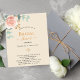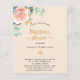 Arrière - plan beige. Décoré d'or rose et de fleurs roses rousses, de fleurs roses et de feuilles d'eucalyptus vert aquarellés, de sprigs, de verdure et d'une fausse feuille d'or. Personnalisez et ajoutez le nom de la mariée à être et les détails du parti. Lettres noires et dorées. 1 feuille = 1 invite imprimé bord à bord.