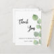 Une carte de remerciements pour une Fête des mariées. Un arrière - plan blanc chic décoré de verdure d'eucalyptus. Sur l'avant, grand noir de couleur manuscrit et le texte : Merci, votre et une date. Retour : Personnalisez et ajoutez Votre note de remerciement et votre nom.