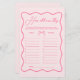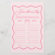 Faites de votre célébration inoubliable avec ce jeu d'âge Guess Age de Fête des mariées Wavy Pink Personnalisé! Parfait pour les valentines les idées de douche nuptiale, ce jeu convient à toute douche nuptiale rose ou les idées de douche nuptiale rose. Complétez votre attachement au thème de la douche nuptiale du noeud ou ses liens au thème de la douche nuptiale du noeud. Idéal pour la cravate des idées de douche nuptiale, baiser adieu mante, joli à la fête de bachelorette rose, ou une fête de bachelorette rose et de douche nuptiale arc!