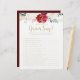 Cette douche de mariée classique en or ce que le marié a dit jeu est parfait pour un wedding shower rustique. Le design se compose de fleurs blanches, bordeaux et dorées et de baies au feuillage vert disposées en bouquets élégants.