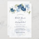 Customisez cette carte d'invitation pour le budget de la douche nuptiale en cliquant sur le bouton "Personnaliser" ci-dessus. La carte présente une élégante et moderne fleurs bleues poussiéreuses, blanches, bleu clair et vert olive. CONSEIL : Idéal pour les fêtes surprise, les baby showers, les mariages et les retraites.