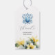 Ces étiquettes de faveur de la douche nuptiale présentent des fleurs d'hibiscus d'aquarelle uniques dans les tons jaunes avec une crête monogrammée bleue. Utilisez les champs modèle pour ajouter vos détails personnalisés. Un choix élégant pour les fêtes de printemps et d'été. Pour voir plus de douche à nuptiale fleurie et merci mariage préférés tags visitez www.zazzle.com/dotellabelle Unique aquarelle art et design exclusif à Do Tell A Belle