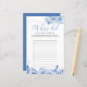 Fête des mariées Carte de jeu, personnalisée avec les noms de la mariée et du marié. Design floral bleu Dusty avec des fleurs d'aquarelle, le feuillage et la calligraphie élégante. Conçu pour le jeu photo de la douche mariage ou nuptiale "où étaient-ils" ou "où sont-ils allés" avec des lignes numérotées pour vos invités à ajouter jusqu'à 12 réponses.