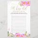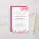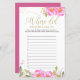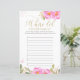 Fête des mariées Carte de jeu, personnalisée avec les noms de la mariée et du marié. Design floral rose avec fleurs d'aquarelle et le feuillage, bourgeons dorés et calligraphie élégante. Conçu pour le jeu photo de la douche mariage ou nuptiale "où étaient-ils" ou "où sont-ils allés" avec des lignes numérotées pour vos invités à ajouter jusqu'à 12 réponses.