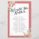 Amusement de Fête des mariées jeu Voudrait-elle Plutôt. Personnalisez cette feuille de jeu bidirectionnelle en ajoutant le nom et la date de la mariée. Consultez la collection entière pour voir d'autres objets correspondants.