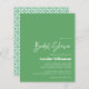 Célébrez la future mariée avec cette charmante invitation à la douche nuptiale avec un front vert frais et un dos à motifs géométriques qui ajoute une touche ludique. Parfait pour ceux qui planifient un événement élégant mais abordable, cette invitation mélange simplicité et style sans effort. Qu'il s'agisse d'organiser un rassemblement de jardins ou une célébration formelle, c'est un choix idéal pour les hôtes modernes qui aiment les détails personnalisés avec une pop de couleur.