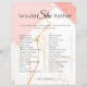 Ajoutez ce plaisir Voudrait-elle Plutôt Fête des mariées jeu. Un design moderne en marbre présente votre entreprise de manière élégante. Les parties scintillantes sont simulées par le design. Il n'y aura pas de parties scintillantes sur ce produit. La coordination à l'envers est incluse. Les articles correspondants pour compléter votre collection d'événements sont disponibles dans notre boutique Zazzle!