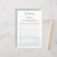 Feuille de réponse de jeu de Fête des mariées que vous pouvez personnaliser pour Couples Douche, Wedding shower, Baby shower etc. Parfait pour utiliser avec n'importe quelle question ou des jeux de devinettes à votre mariage ou douche nuptiale avec lignes numérotées pour que vos invités ajoutent jusqu'à 15 réponses. Le titre se distingue dans la calligraphie lettrée avec une élégance décontractée. Design minimaliste chic avec typographie noir et blanc sur un arrière - plan blanc fini, avec un lave-aquarelle doux et une palette de couleurs vert doux au verso. Un design simple, moderne et élégant, à coordonner avec de nombreux thèmes wedding showers. Parcourez ma collection pour trouver les articles correspondants ou envoyez-moi un message pour créer les modèles dont vous avez besoin.
