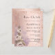 Une invitation moderne, élégante et glamour pour une Fête des mariées, à thème parisien. Un arrière - plan rose à dégradé d'or avec des faux étincelles et la tour Eiffel avec quelques fleurs. Le nom est écrit avec un script de style moderne écrit à la main. Personnalisez et ajoutez les détails de votre fête. 1 feuille = 1 invite imprimé bord à bord.