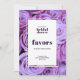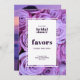 Moderne minimaliste violet Rose Photo Fête des mariées Favoriser la carte de table Faire pop vos détails de l'événement avec cette élégante carte de table! Cette carte personnalisable 5x7 dispose d'une belle aquarelle en toile de fond de roses violets romantiques, parfaitement encadrée par une disposition blanche propre. L'avant est conçu avec un "Favors" de bon goût en caractères gras, ainsi qu'une instruction polie pour "Please take one!" et un message chaleureux "Merci". Il est personnalisé avec le nom de la future mariée et les mots "Fête des mariées". Cette belle carte est le moyen parfait pour diriger les clients vers la table de faveur. Mais la meilleure partie ? Le dos ! C'est une toile magnifique pour une photo mémorable de la future mariée, avec une élégante typographie de son futur nom. Cela garantit un affichage sans faille de n'importe quel angle lorsqu'il est placé dans les supports de cartes, les supports en bois ou les supports de clip (non inclus). Cette tenue de séjour est un complément étonnant et fonctionnel à votre événement. Il suffit de le personnaliser avec son nom et ses détails pour créer une belle enseigne moderne.