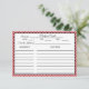 Cartes de réponse de carte de recettes personnalisées de style vintage pour une douche nuptiale. Pois noirs sur pastèque rose. Revenez dans le temps et prenez une douche nuptiale qui est une délicieuse explosion du passé avec notre Collection de Fêtes des mariées inspirée de la cuisine Vintage. Admirez le charme d'antan en célébrant la future mariée avec une touche d'humour et de nostalgie. La pièce maîtresse de cette collection est un dessin vintage fantaisiste représentant un cocktail de cuisine, parfaitement complété par la légende ludique "Je n'ai qu'une cuisine parce qu'elle est venue avec la maison." Des invitations qui transportent vos invités à une époque révolue à la décoration qui transforme votre espace en un havre rétro, chaque détail respire l'élégance et le rire vintages. Partagez dans la joie d'une mariée qui a un défi domestique avec des signes, des faveurs et des activités personnalisées qui tissent l'esprit du passé et l'excitation de l'avenir. Cette collection est un mélange chaleureux d'esthétique vintage et de célébration moderne, assurant une douche nuptiale inoubliable remplie de souvenirs et de rires chéris qui résonnent à travers les âges.