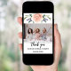 Une carte de remerciements nuptiale moderne et élégante. Un arrière - plan blanc chic. Décoré d'or rose et de roses roses rousses, de fleurs florales et de lavande. Lettres noires et dorées. Sur le devant le texte : Merci, nom, et une date. Retour : Modèle pour Votre mot de remerciement et nom.