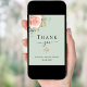Un arrière - plan vert sage. Décoré d'or rose, de fleurs roses rousses, de fleurs (roses) et de feuilles d'eucalyptus vert couleur eau, de sprigs, de verdure et de sprigs faux or. Script écrit à grande main et texte : Merci. Personnalisez et ajoutez votre note de remerciement et votre nom.