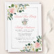Fête des mariées Tea Party Aquarelle rose blanc Floral et Invitation d'argent - Script rose