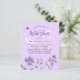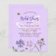 Un arrière - plan violet. Décoré d'abeilles et de fleurs sauvages peints en violet et rose et d'un grand papillon. Personnalisez et ajoutez un nom et des détails du parti. 1 feuille = 1 invite imprimé bord à bord.