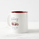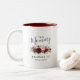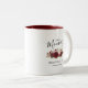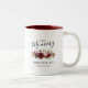La tasse à café de la journée de la mère branchée, avec le dicton mignon "cette maman appartient à", les fleurs boho rustiques bordeaux & bleu d'aquarelle, et les noms des enfants.