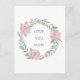 N'oublie pas ta mère. Cette simple carte postale de la Fête des Mères permet d'envoyer facilement avec une jolie conception de couronne fleurie avec roses roses et feuillage bleu vert en aquarelle. Dans le centre est écrit "Love you Mom" en bleu vert sans serif police correspondante.