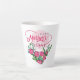 Cette tasse à café latte est montrée avec un voeu de Bonne Fête des Mères avec des fleurs. Customiser cette tasse ou acheter tel quel. Image stock vecteezy.com