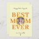 Soleil Jaune avec soleil Happy Mother's Day photo personnalisée Best Mom Ever carte de voeux jaune avec typographie orange tendance et une écriture manuscrite style calligraphie script texte et signature.
