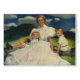 Illustration vintage pour la fête des mères représentant une famille posant pour un portrait dans l'herbe par une journée ensoleillée de printemps, une mère avec son fils et sa fille.