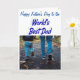 Carte de voeux fête des pères avec le meilleur papa du monde en texte bleu 3D et votre photo. Customisez votre texte à l'intérieur de la carte pour une touche personnelle.