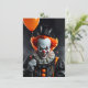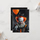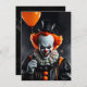 Prêt à faire la fête ? Invitations de fête d'Halloween. Des clowns effrayants tiennent un ballon noir d'Halloween invitations de fête fait dans un style comique livre étrange.