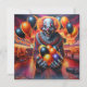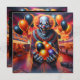 Invitations de fête d'Halloween. Clown effrayant avec ballons noir, violet et orange pour votre fête d'Halloween adulte effrayant.