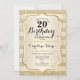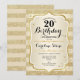 Invitation de fête du 20e anniversaire. Design élégant en or. Comprend des bandes d'or de parties scintillant, des polices de caractères et des confettis stylisés. Idéal pour fêter un anniversaire glamour.