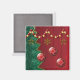 Des couches de fractales composent ce design de Noël stylisé. Une toile de fond rouge muet, un arbre vert épicé, des étoiles dorées et des flocons de neige suspendus à un fil de perles rouges et d'or, et trois boules rouges avec un design doré tourbillonnant accroché devant.
