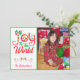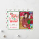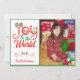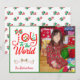 Envoyez cette carte de vœux lumineuse et colorée à vos amis et à votre famille et mettez un sourire sur leur visage ! Le design présente une typographie qui dit "Joie au monde" et le mot Joie est décoré de façon festive en rouge, or et vert avec des ornements, un nœud et un sapin de Noël. Téléchargez votre photo de famille ou d'enfant préférée et personnalisez-la avec votre nom et vous avez terminé ! Le verso de la carte présente un motif de canne à bonbon en (faux) strass scintillant. Encore beaucoup d'autres modèles dans ma boutique sur www.zazzle.com/digiscrapthat
