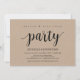 Fête pour toujours heureux, carte d'invitation de mariage en fuite. Cette carte d'invitation de mariage kraft rustique est parfaite pour votre réception de mariage et fête de célébration post-mariage. Ajoutez vos détails dans une police / lettrage noir assorti.