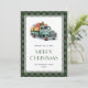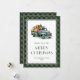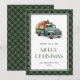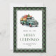 Cartes de Noël personnalisées et rétro avec un camion vert. Personnalisez facilement ces cartes de Noël de camion vert d'aquarelle enneigée avec votre nom de famille.