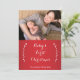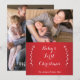 Cartes de Noël pour le premier Noël de bébé rouge et blanc avec texte modifiable et photo de famille - vous pouvez ajouter votre photo, nom de famille et année.