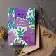 Illustration violette et verte avec des chats et du feuillage. Bonne fête des pères aux papas de chats. Bonne fête des pères pour les chats ! Meilleure carte de papa de chat.
